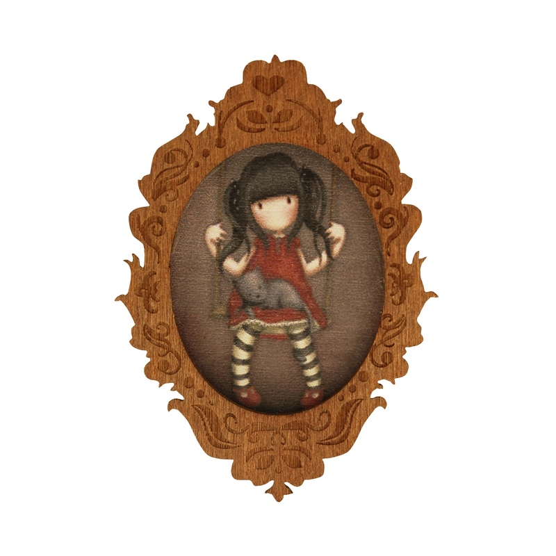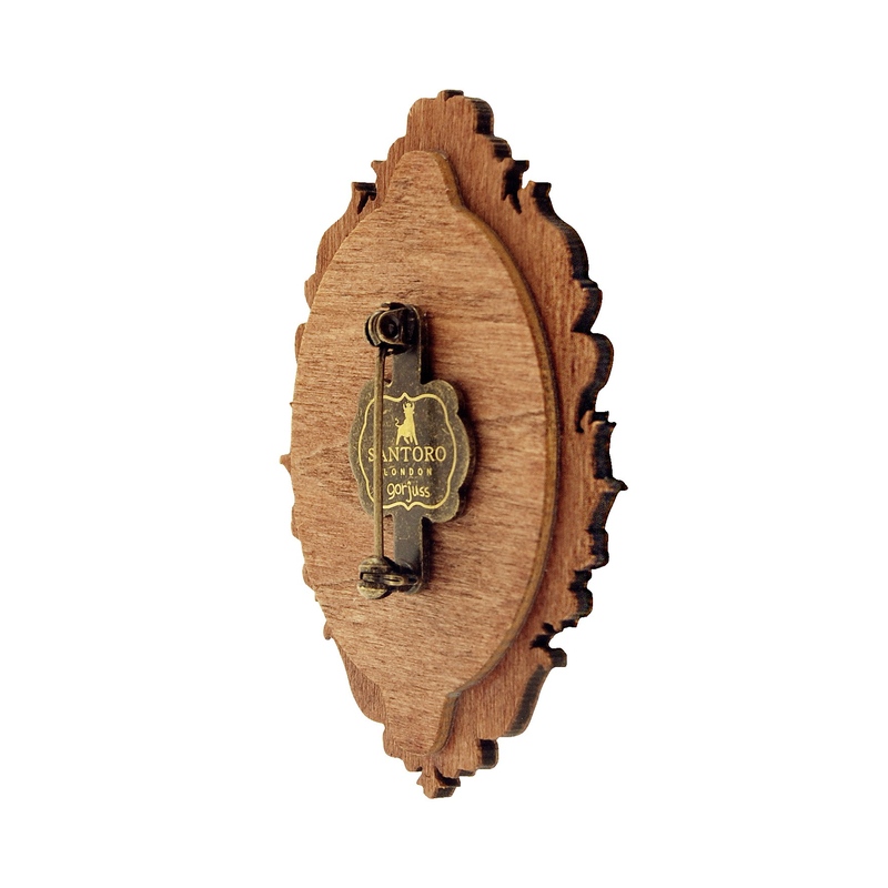 Gorjuss Chronicles Brosa - Ruby este un obiect minunat ce va oferi o atingere fina in stil Gorjuss vestimentatie dumneavoastra. Cutia in care vine aceasta brosa are un model elegant gravat cu auriu si o banda elastica ce pastreaza inchis micutul pachet in forma de carte. Brosa este confectionata dintr-un lemn atent gravat ce infatiseaza o minunata fetita Gorjuss. Acesta piesa eleganta poate fi oferita cadou datorita cutiei aparte in care este ambalata, sau poate fi folosita pentru a va intregi colectia de accesorii.
