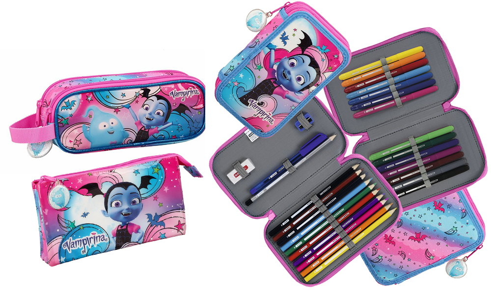 Potrivite pentru grădiniță și clasa pregătitoare, cel mai noi ghiozdane și accesorii pentru școală cu Vampirina sunt fabricate din materiale rezistente, de cea mai înaltă calitate. În culori vesele, vibrante, aduc bucurie în fiecare zi, pregătirea pentru plecarea la școală și grădiniță devenind astfel motive de voioșie.
