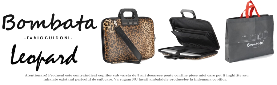 O geanta fashion pentru business si laptop, cu un design subtil si functional, insa robusta, eleganta, este fabricata din piele ecologica cu manere rezistente din silicon. Geanta lux business laptop 15.6'' Bombata Leopard nu este deloc plictisitoare, ea este realizata din materiale rezistente, avand un model, animal print- leopard. Marginile elegante, care mascheaza perfect fermoarul, dau acea nota suplimentara de eleganta care o face remarcata.