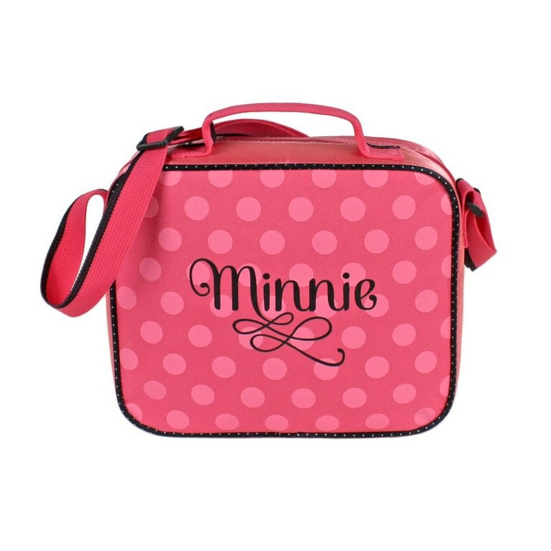 Gentuta de pranz din colectia Minnie Mouse are un compartiment care se inchide cu fermoar, bareta de mana, bretea ajustabila.