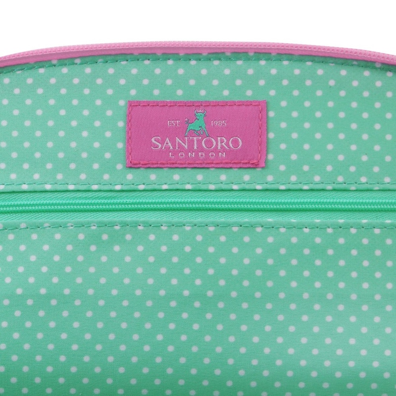 Geanta cu barete textile Gorjuss Tall Tails se deschide cu ajutorul unui fermoar cu efect vintage, iar interiorul sau este spatios si cuprinde un buzunar cu fermoar si doua buzunare spatioase. Interiorul este verde cu buline albe.