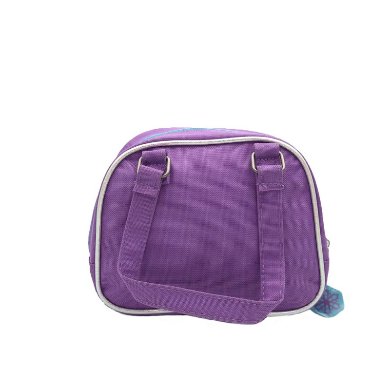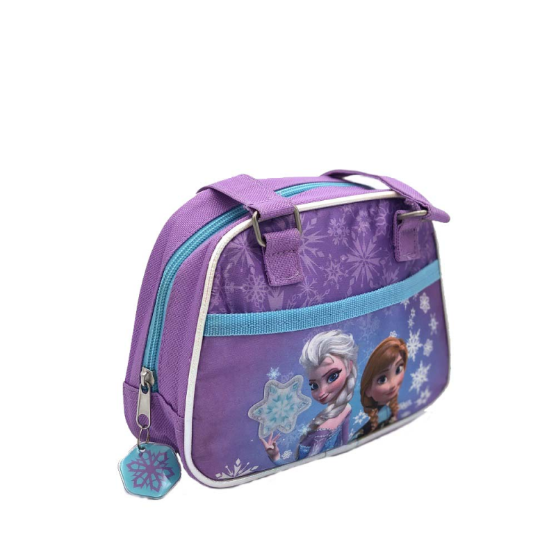 Geanta de umar Frozen Disney are un singur compartiment este inchisa cu fermoar, un buzunar frontal si doua barete, iar pe fata sunt imprimate cele doua printese Anna si Elsa.
