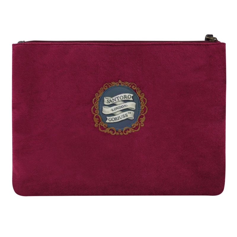 Aceasta poseta are trei compartimente diferite inchise cu un singur fermoar. Pe partea din fata este ilustrata fermecatoarea fetita The Hatter, iar pe spate un fundal elegant cu logo-ul Santoro. Geanta are o curea maro detasabila si un interior cu captuseala dungata monocroma. Produs Gorjuss captivant, perfect pentru o garderoba deosebita.