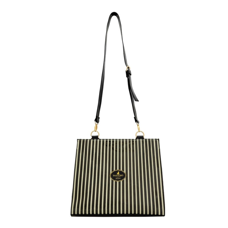 Interiorul este căptușit cu un model drăguț și are două compartimente pentru a stoca lucruri; ambele sunt separate printr-un compartiment închis, care poate fi deschis cu ajutorul fermoarului. Există, de asemenea, trei buzunare mai mici pentru depozitare suplimentară, unul care este dotat cu fermoar. Geanta are un spațiu amplu in interior pentru lucruri zilnice, poate fi transportata cu mânerul elegant sau cu cureaua de umăr reglabilă, detașabilă.