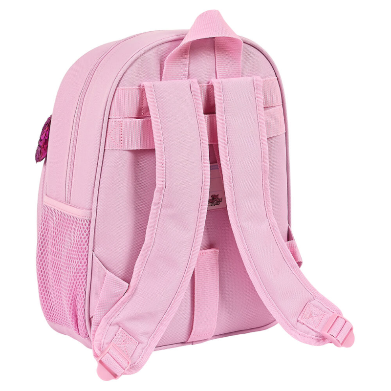 - Rucsacul clasa 0 Na! Na! Na! Surprise Sparkles are un compartiment principal foarte incapator si un buzunar frontal ambele se inchid cu fermoar.