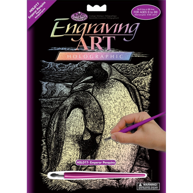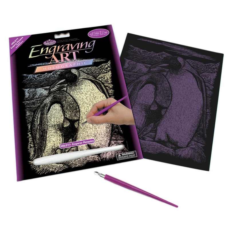 Set gravura pe folie holografica - Pinguini te invita sa petreci cateva ore in compania celei mai vechi forme de exprimare artistica de cand exista omul pe pamant. Placa neagra predesenata in tonuri fine de gri inchis te va ghida in noua ta calatorie poate chiar initiatica. Nu stii niciodata ce pasiuni va trezi in interiorul tau.