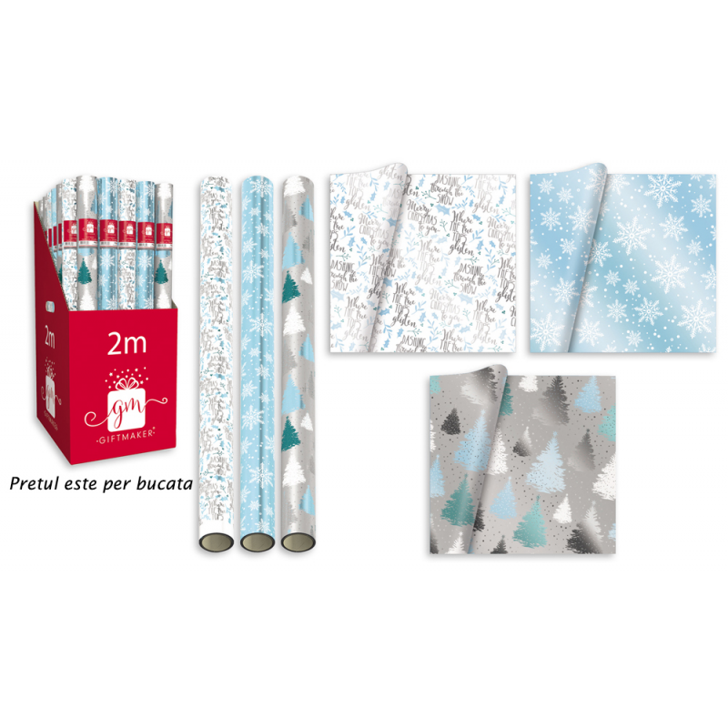 Hartie de impachetat efect folie model iarna, este o hartie pentru cadouri cu efecte speciale! Alege aceasta hartie de tip folie pentru cadourile din acest an! Raportul calitate-pret este cel mai bun pentru aceste ambalaje speciale pentru cadouri!
