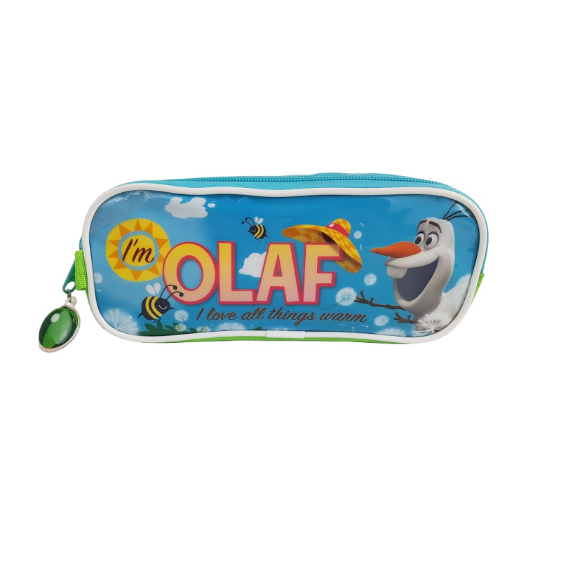 Penarul Olaf echipat este viu colorat este prevazut cu doua compartimente inchise cu fermoare, unde copii pot pastra atat instrumentele de scris/colorat cat si micii prieteni de care nu se pot desparti la gradinita sau scoala.