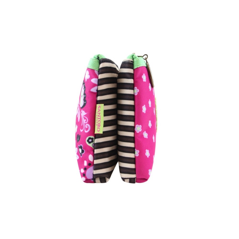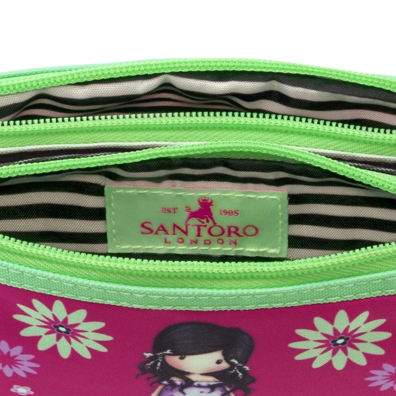 Penarul dublu Gorjuss Fiesta You Brought Me Love este un penar unic, foarte vesel si colorat. In centrul atentiei este micuta You Brought Me Love, in décor de floricele colorate in nuante de lila, verde si ciclam. Contrastul puternic dat de aceste culori atrage privirile instant. Spatele penarului este la fel de vesel colorat, in nunate tari, decorat cu floricele si logo-ul Santoro London pe mijloc. Interiorul penarului este usor buretat si este format din celebrele dungi alb cu negru Santoro London.