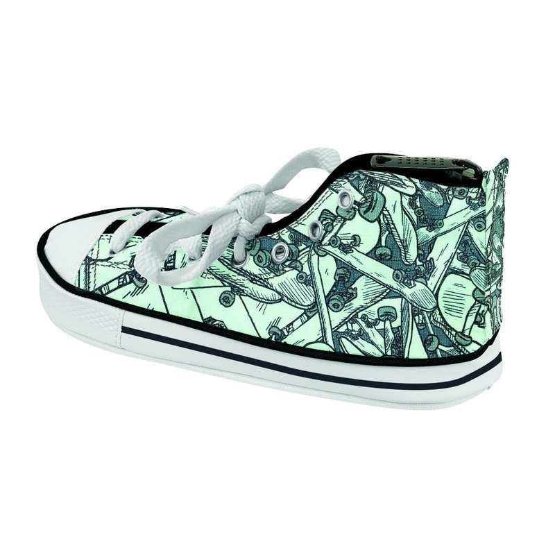 Penarul in forma de pantof sport Safta Skateboard are un design inedit, in nuante de verde si alb.