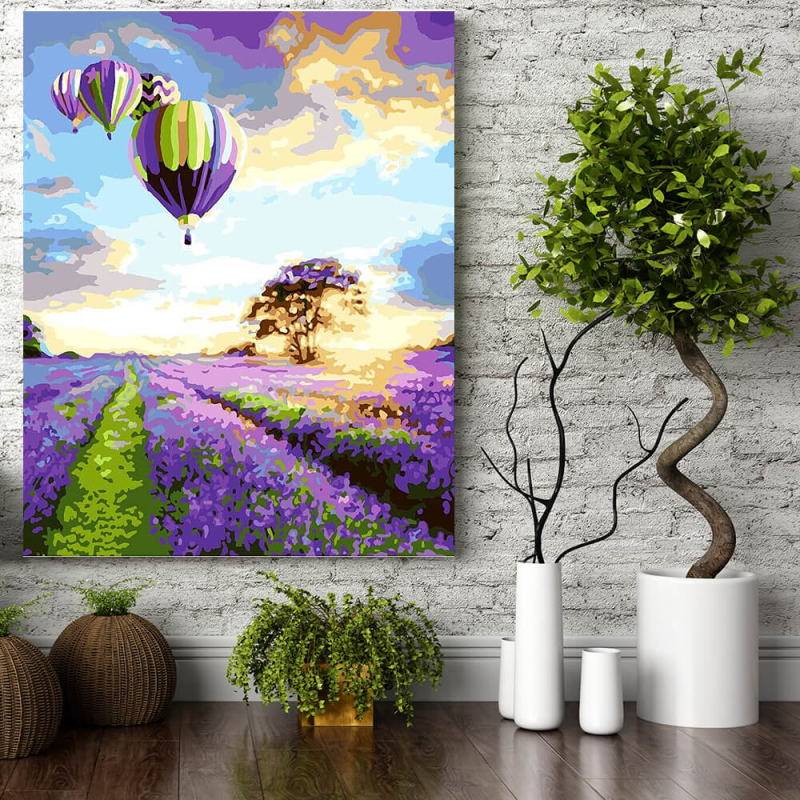 Set recreativ de Pictura pe Numere Zbor deasupra campului cu lavanda 50x40 cm, cuprinde: