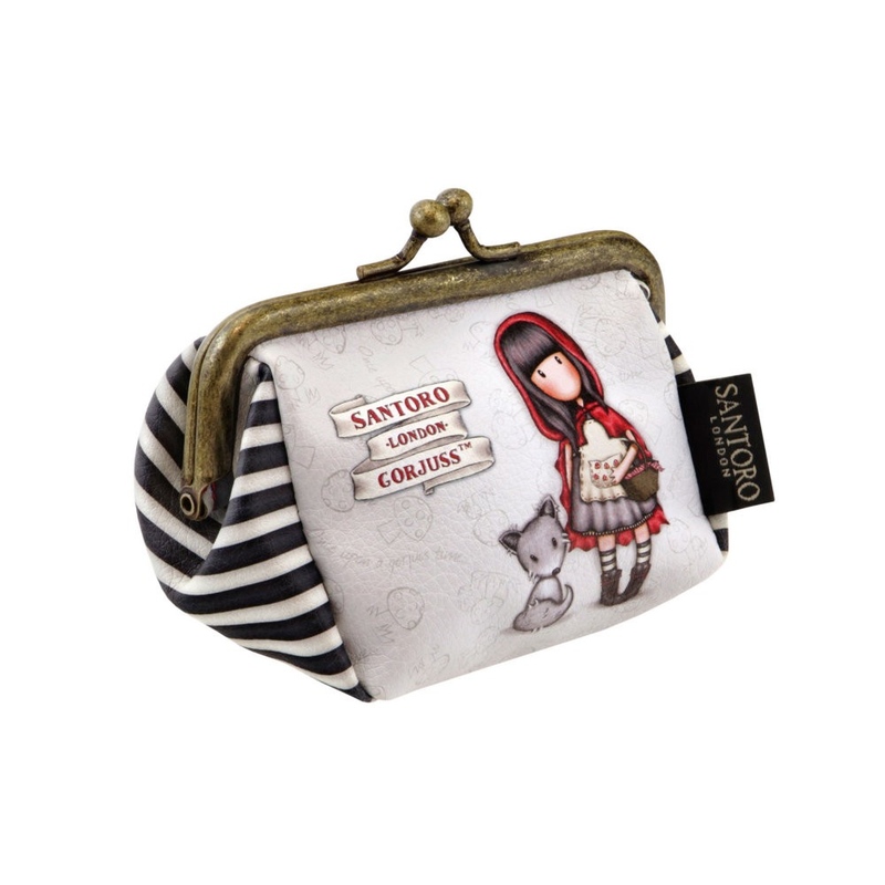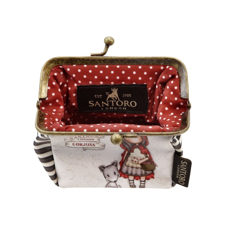 Portofelul cu clips Gorjuss Little Red Riding Hood de la Santoro are un imprimeu deosebit, un incantator design Little Red Riding Hood. Este un accesoriu ideal pentru suveniruri, obiecte mici sau maruntis. Interiorul este din material sintetic de captuseala rosie cu imprimeu elegant de buline albe. Simpatica fetita din colectia Gorjuss Little Red Riding Hood de la Santoro este ilustrata pe ambele parti ale portofelului.