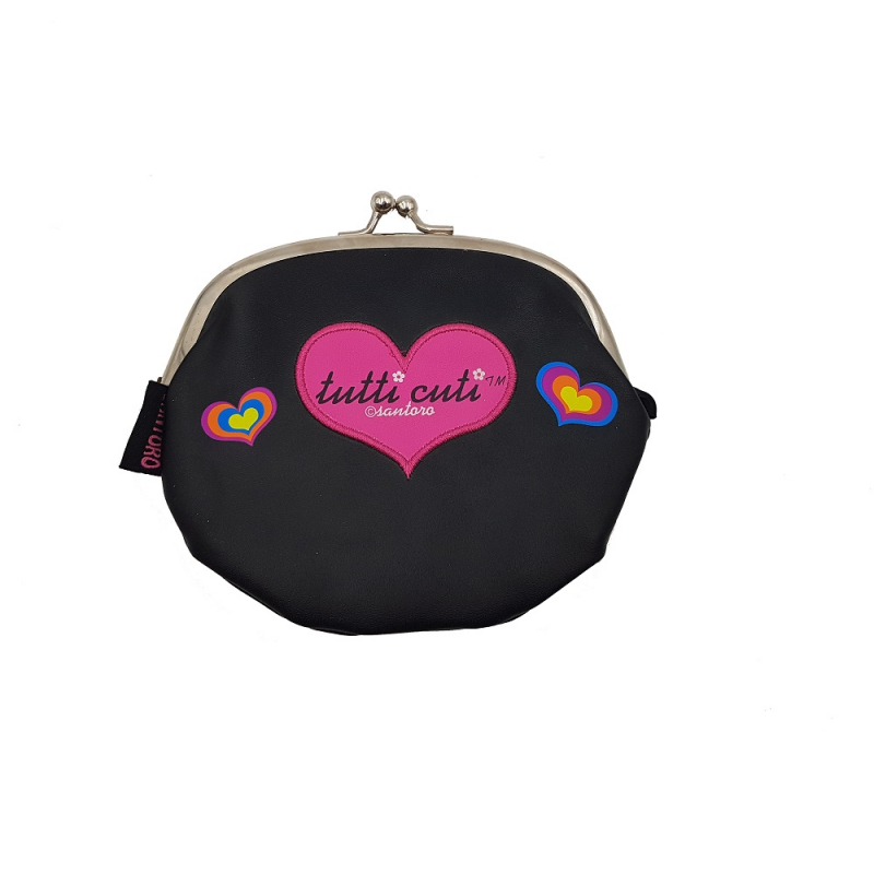 Portofel monede Tutti Cuti negru, un portofel practic, mic, insa foarte usor de purtat in gentuta. Potrivit pentru tinerele domnisoare, acest portofel monede se inchide cu clips.