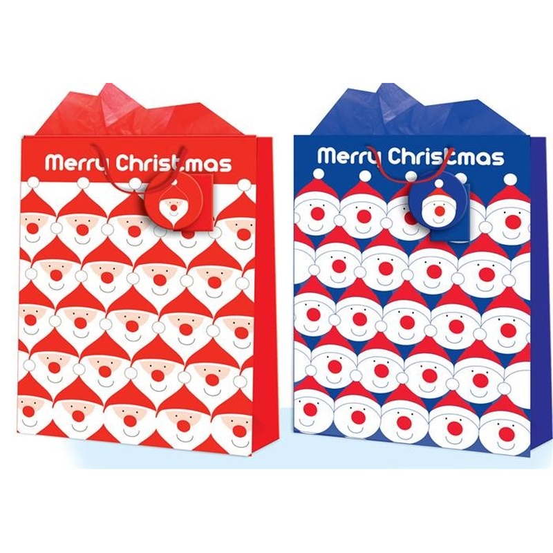 Punga deosebita, model de iarna, realizata manual, din hartie, cu Mos Craciun sau oameni de zapada in culorii vii si glitter fin asortat in culoare, cu minifelicitare pt dedicatie si hartie atasate de punga intr-o mic plic transparent.