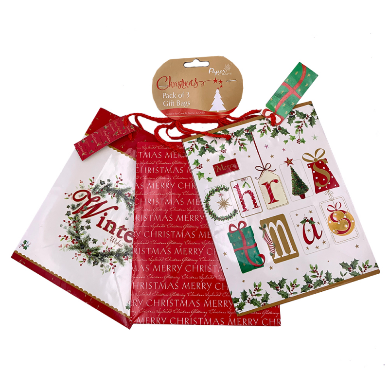 Un set de 3 pungi din hartie lucioasa, modele diferite, dedicate special Craciunului! Sezonul de iarna aduce cu sine relaxare si bucurii prin traditia daruirii de cadouri. Cel mai frumos cadou este cel necunoscut, da... cand nu stii ce este in spatele ambalajului iti da un fior de bucurie nedisimulata. Oare ce mi-a adus? Este ceea ce asteptam? Ambalajul are un rol important in sporirea surprizei si atragerea unei binedispozitii mult asteptate!