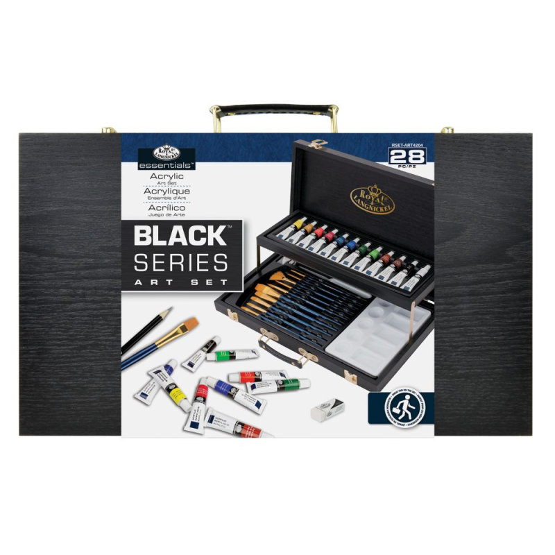 Trusa pentru pictura in culori acrilice cu 28 piese - serie neagra este un set lucrat cu mare atentie la detalii, creat pentru adevaratii profesionisti. Cutia trusei, confectionata din lemn, este foarte eleganta si bine compartimentata, la deschidere avand 2 rafturi pe care este pastrat echipamentul de pictura. Cutia este usor de transportat datorita manerului confortabil.