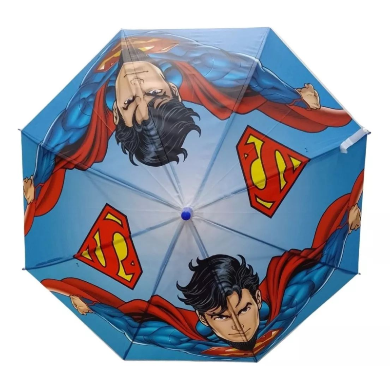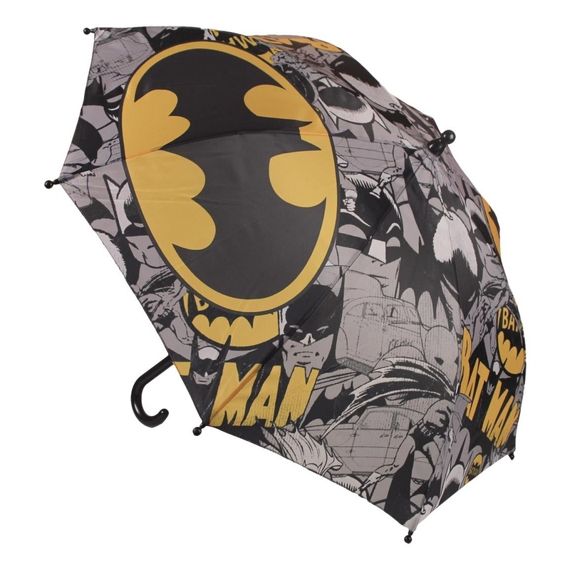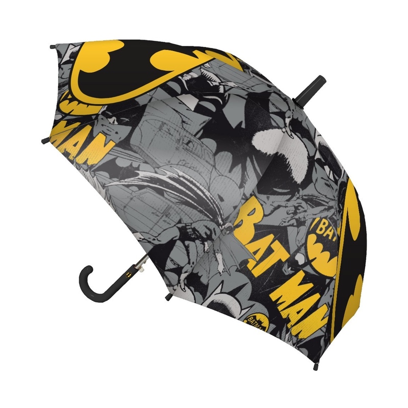 Umbrela manuala copii - DC este un accesoriu dragut, perfect pentru zilele ploioase. Sistemul de inchidere si deschidere al acestei umbrele este foarte practic si usor de folosit, prin simpla manevrare a suportului de spite. Umbrela se strange cu ajutorul unei panglici cu arici. Desenele cu mult indragitii super eroi de la DC - Batman si Superman sunt viu colorate, surprinzandu-i pe acestia in diverse ipostaze. Manerul in forma de baston este usor de tinut in mana si poate fi agatat de orice suport.